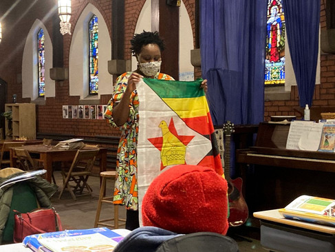 Sandra Matoushaya, a friend of Ms. Opdahl, was a special guest in Grade 7 this week while students are engaged in an African Geography block. Ms. Matoushaya grew up in Zimbabwe. Students learned that Zimbabwe is the same size as the state of Montana and has similar weather to Florida (although their seasons are opposite). Ms. Matoushaya spoke Shona, the main language of Zimbabwe, for the class, even though the official language is English. She fielded questions about crops grown, politics, animals, school, and music.